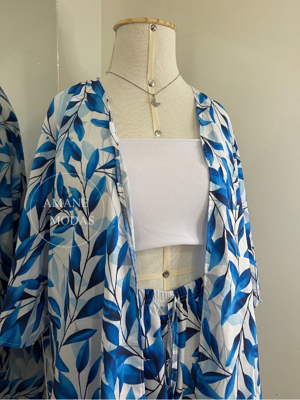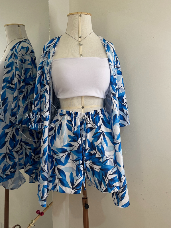 O kimono possui modelagem fluida, perfeito para sobreposições estilosas, enquanto o shortinho tem um caimento soltinho que valoriza a silhueta sem abrir mão do conforto. Um conjunto ideal para quem busca praticidade sem perder a elegância!